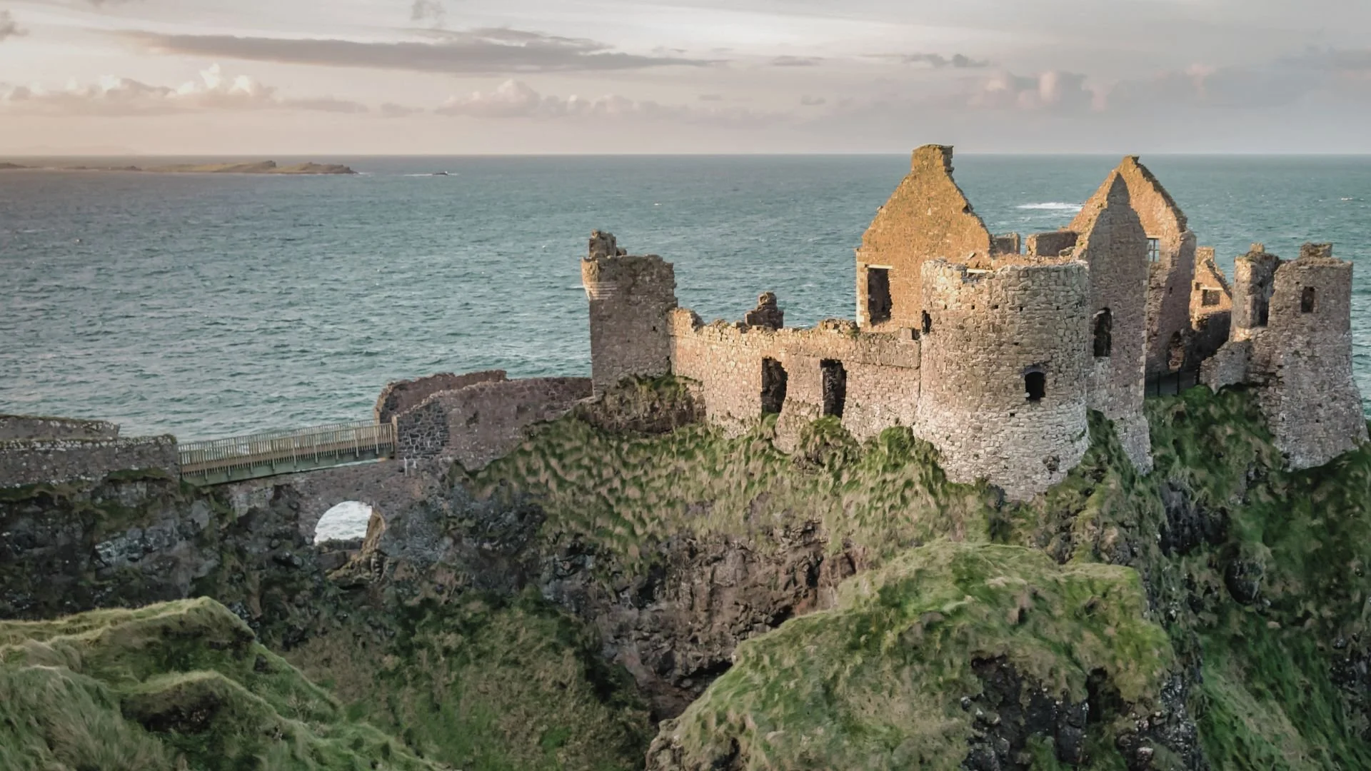 Dunluce Castle: Perched precariously on the edge of a crumbling basalt cliff, these medieval ruins offer one of the most dramatic silhouettes in Ireland. Accessible via a short drive past Bushmills, the castle provides panoramic views of the "mermaids' cave" beneath its foundations.