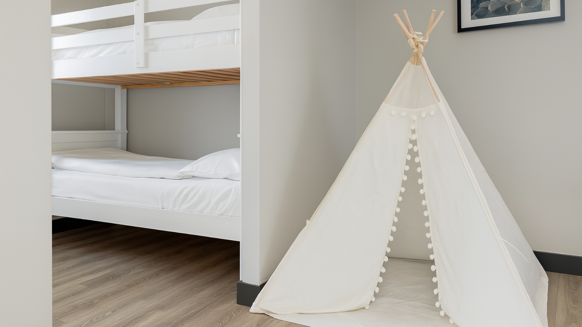 Teepees in designated rooms (speak to our team to request) offer a cosy little retreat for alone time with their favourite toy, while ocean wave sensory touch lamps gently soothe them to sleep. Speak to our team to request a case bag full of colourful fidget toys to keep little hands busy and minds at ease during their stay.